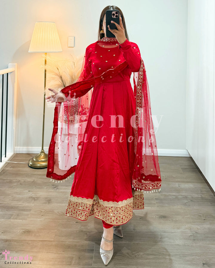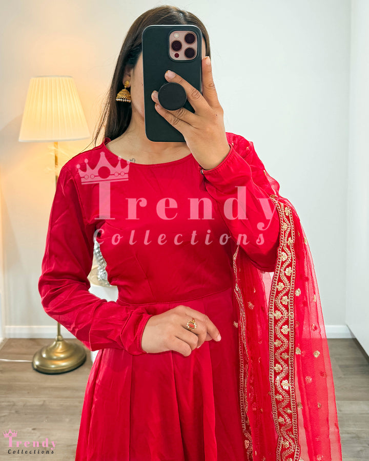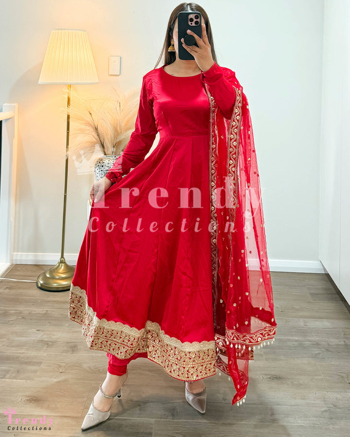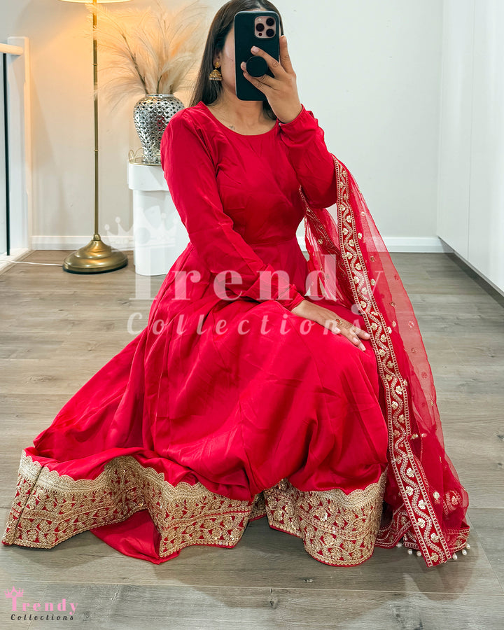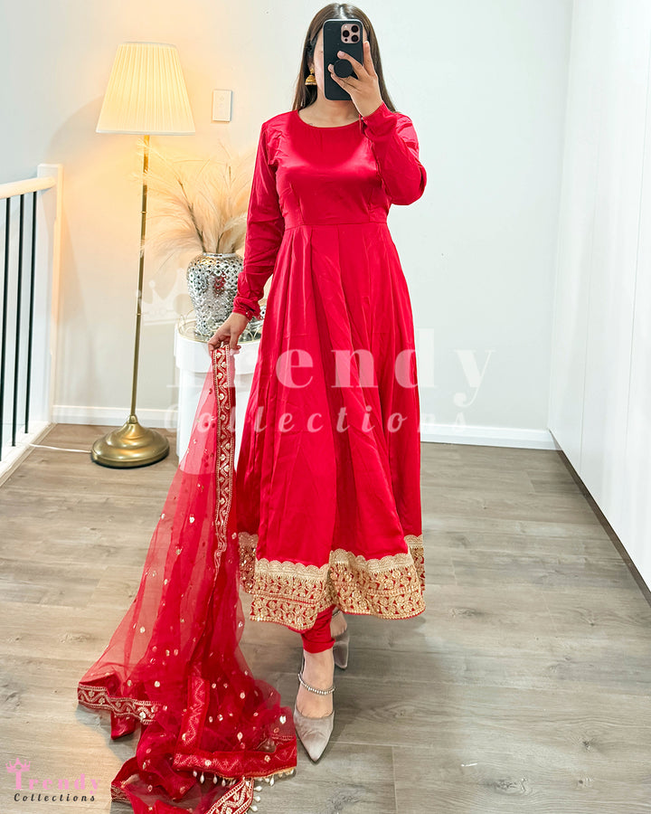 Soft Anarkali Set with Big Boarder - Red (Sizes 34 to 42 available)