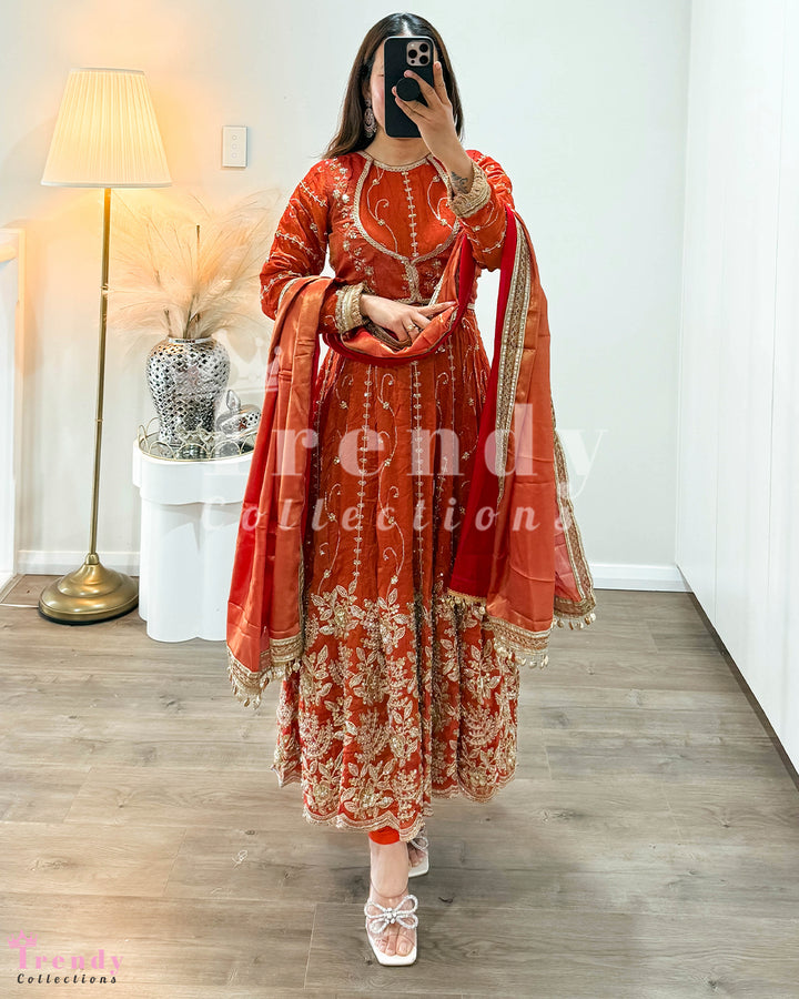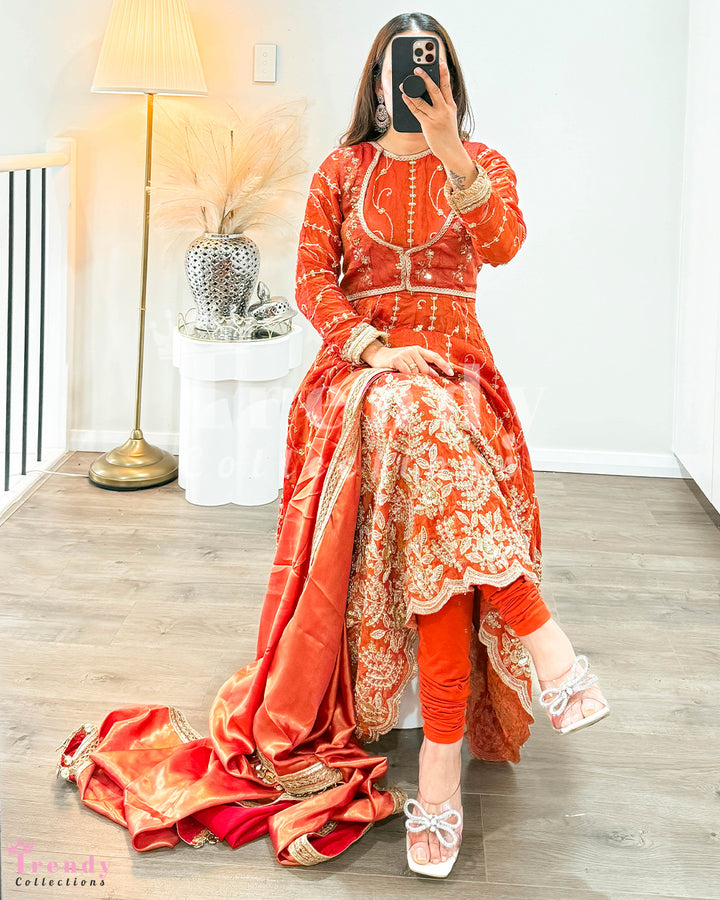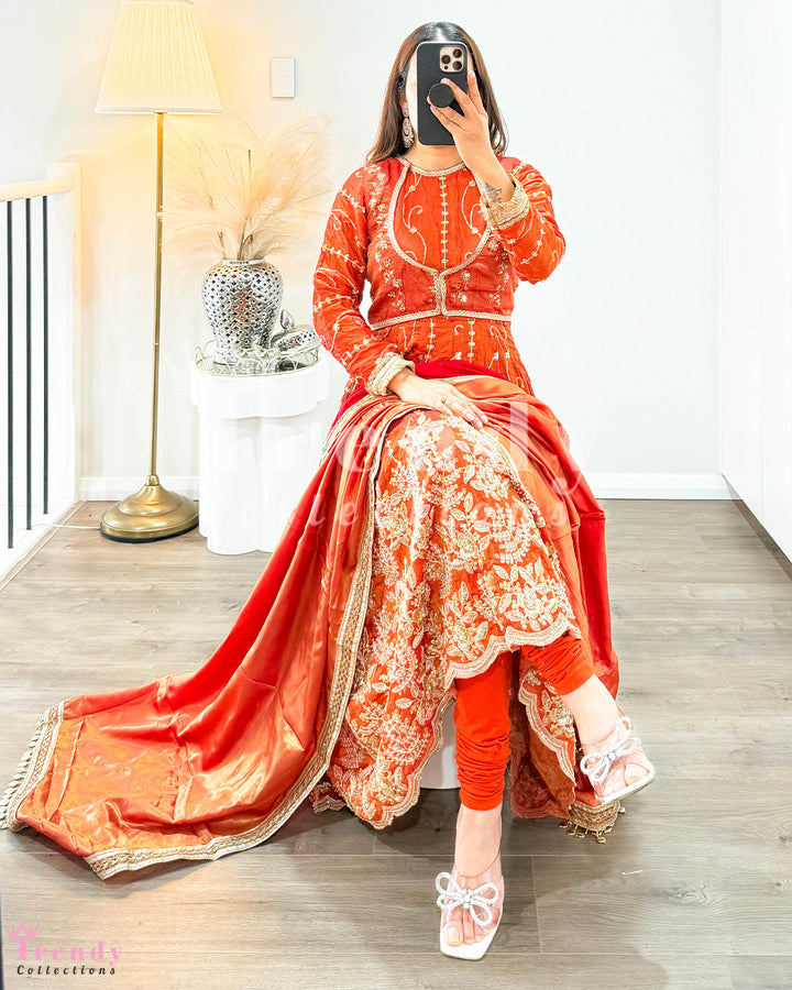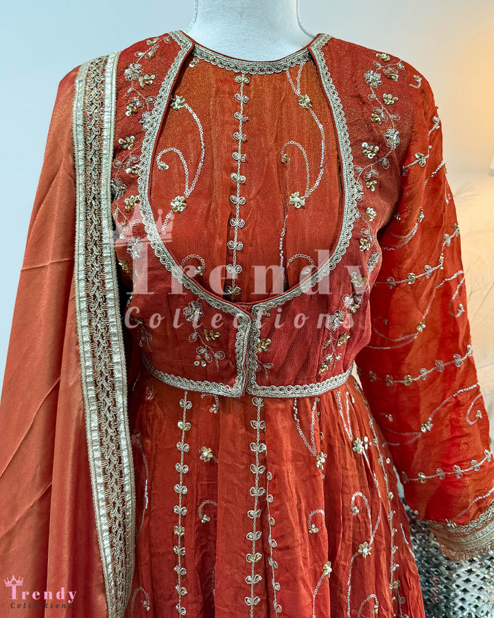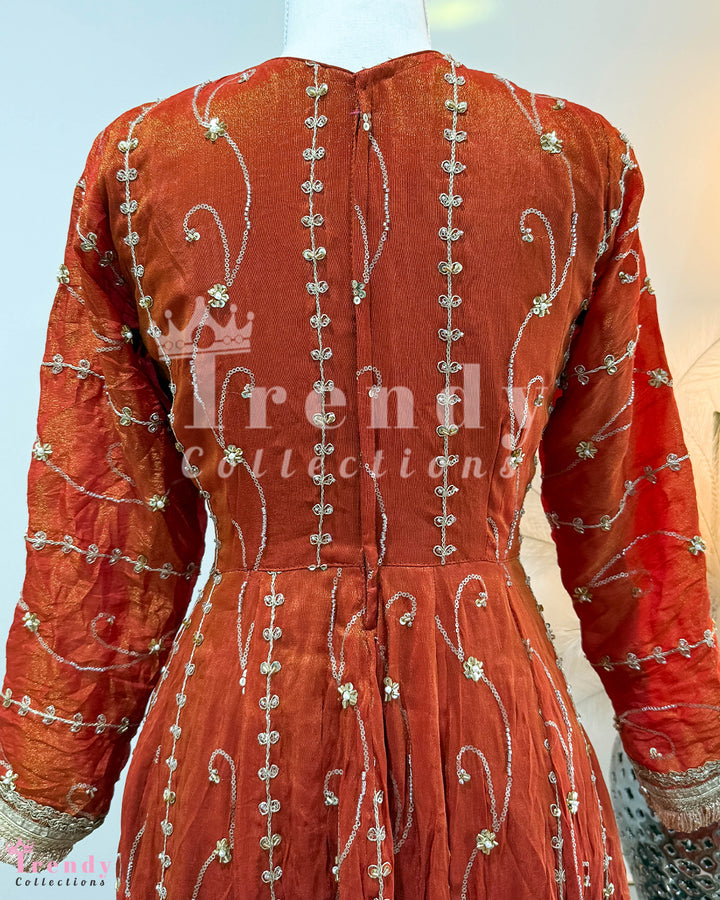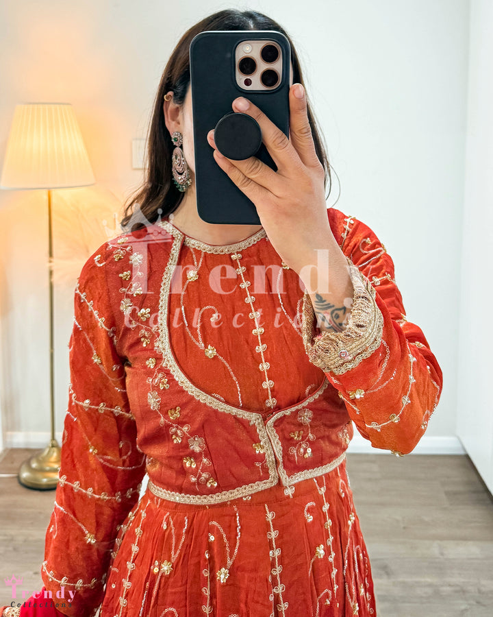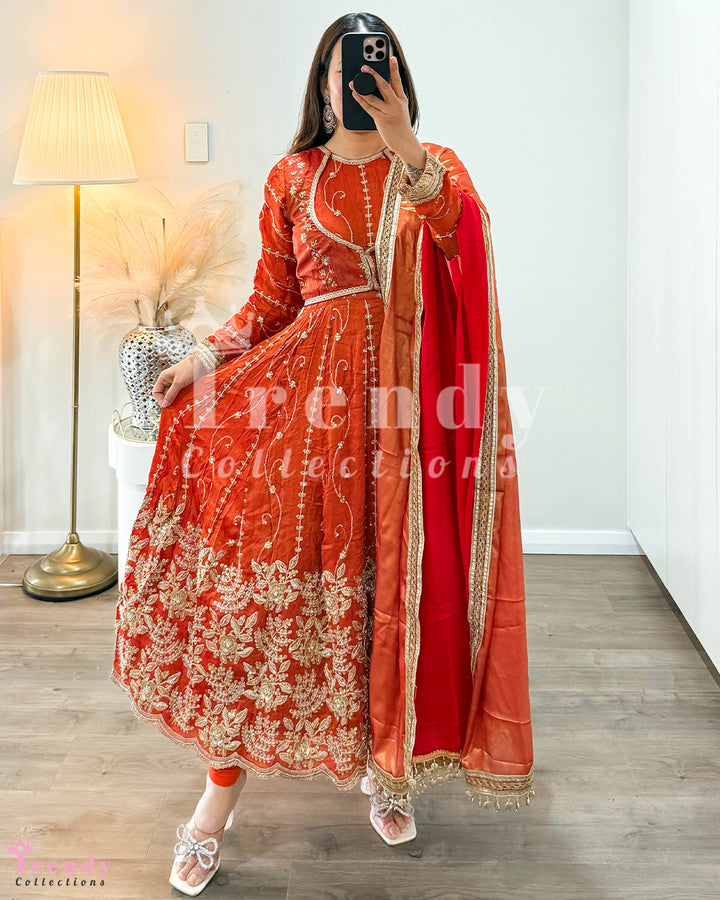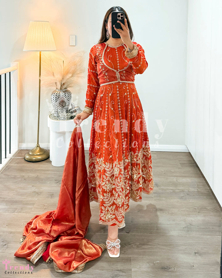 Anarkali Set with Heavy Zari & Sequin Work - Orange Colour (Sizes 36 to 38 available)