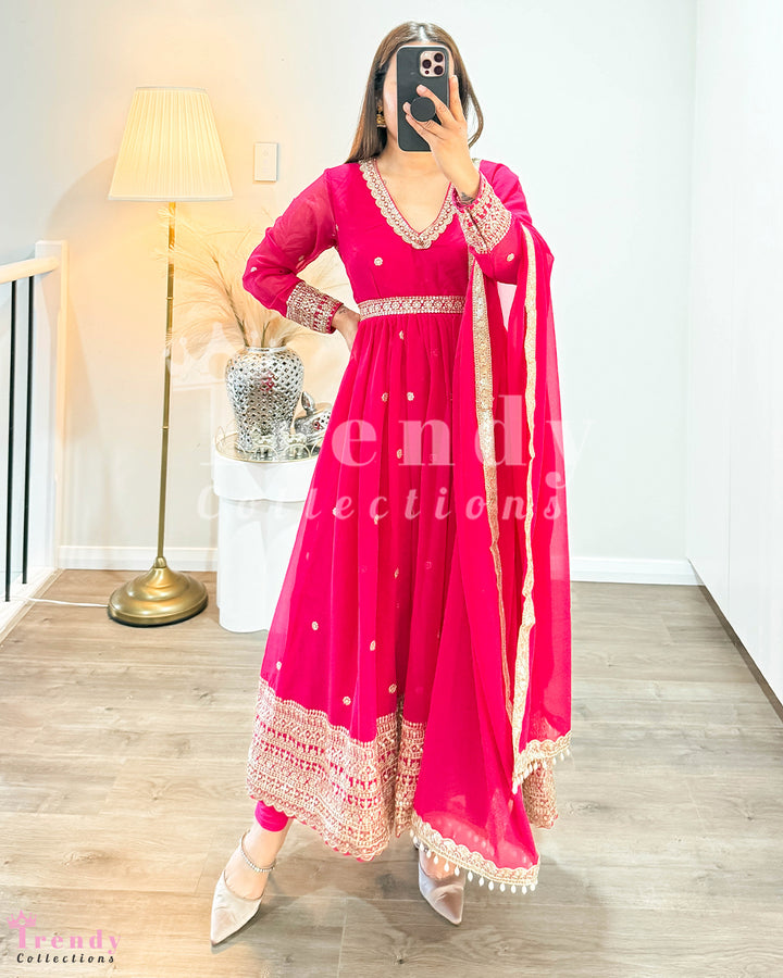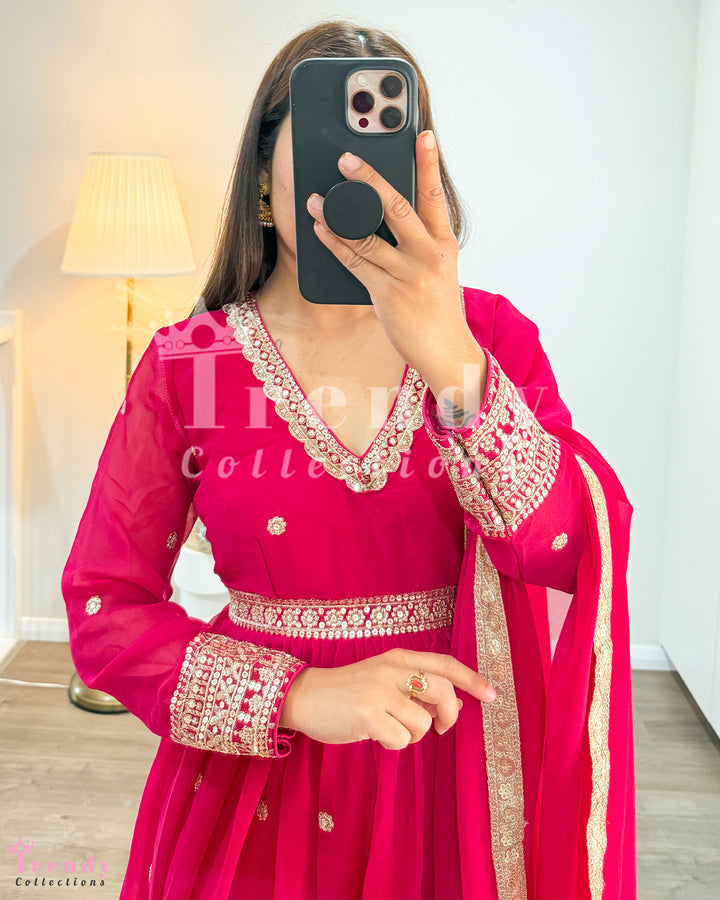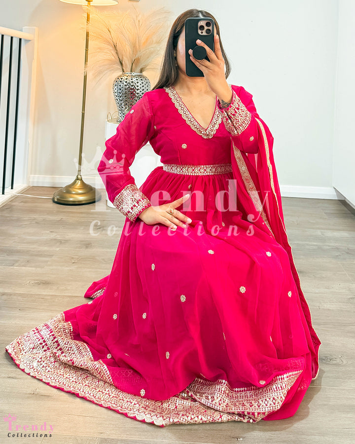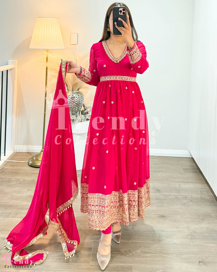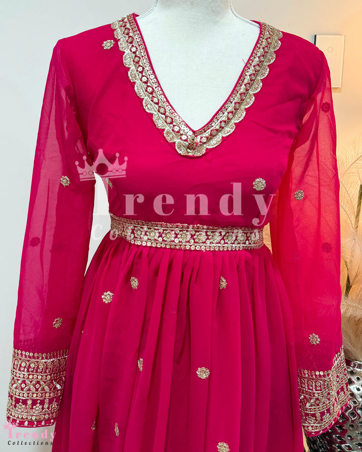 Anarkali Set with Sequin & Zari Work - Rani Pink (Sizes 34 to 42 available)