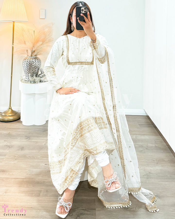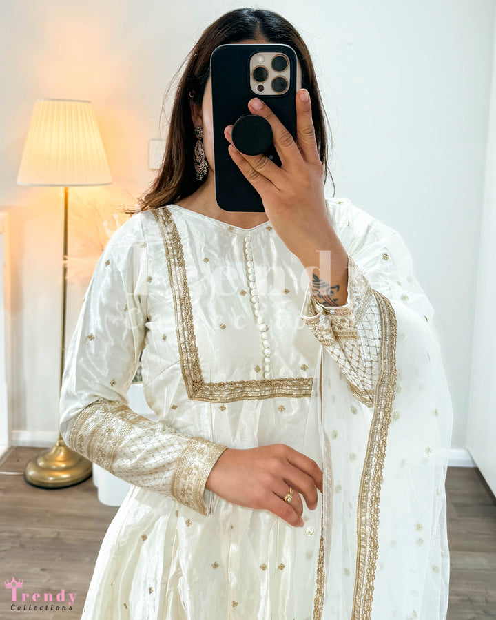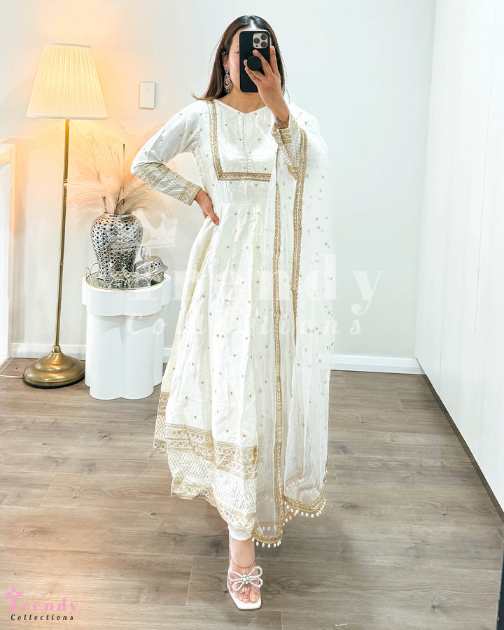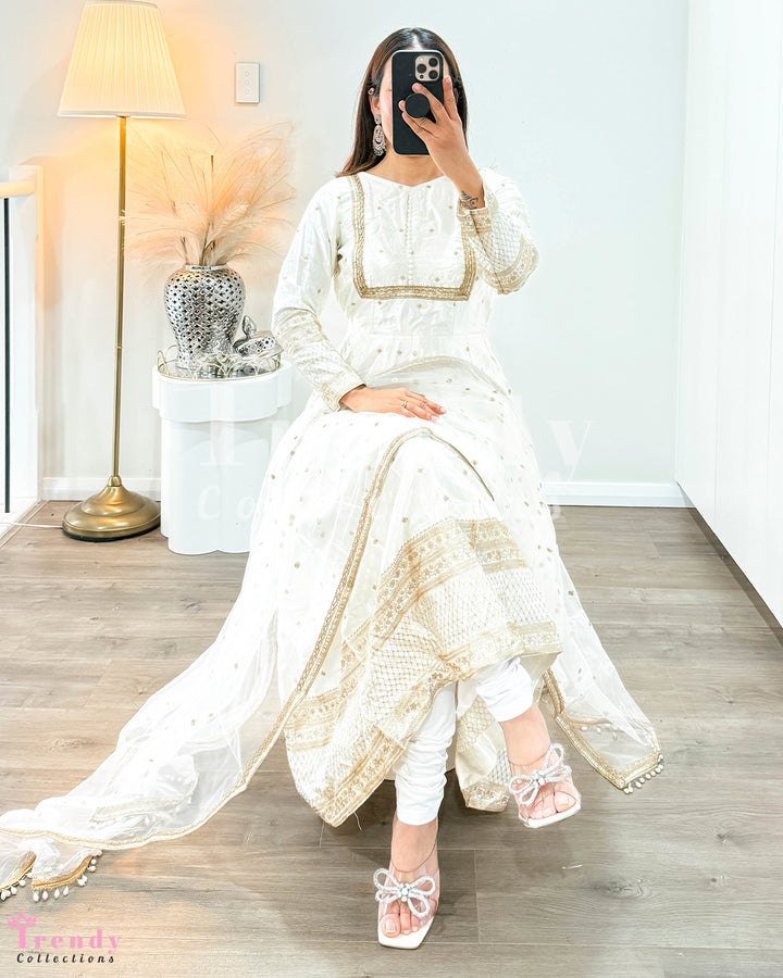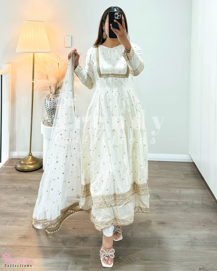 Dola Silk Anarkali Set - Off White (Sizes 34 to 42 available)