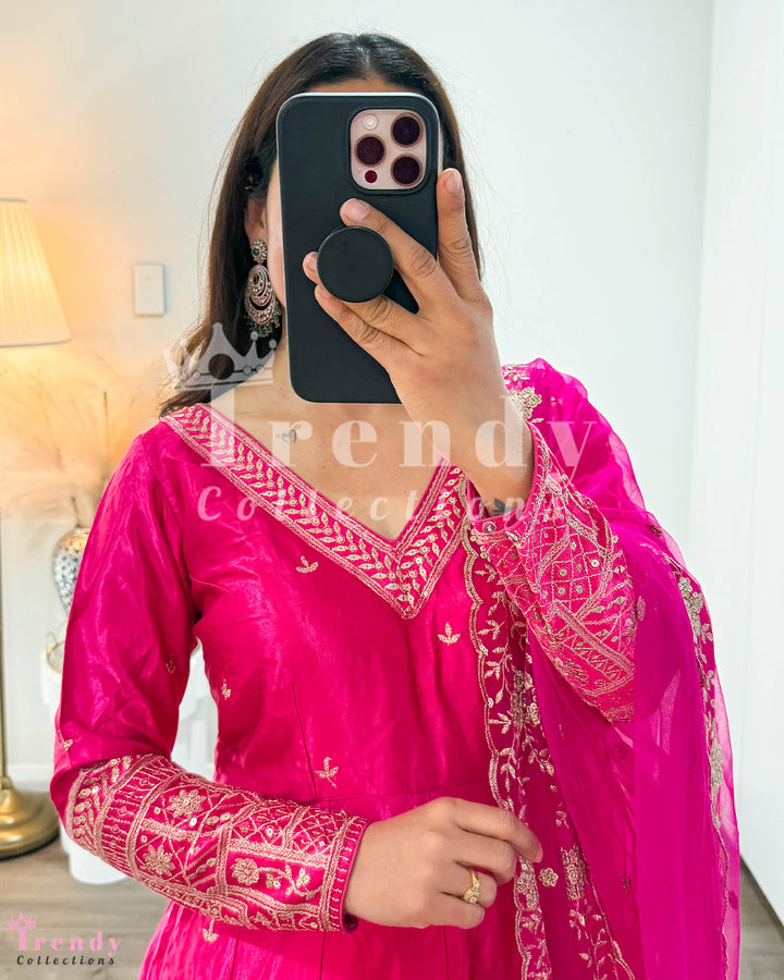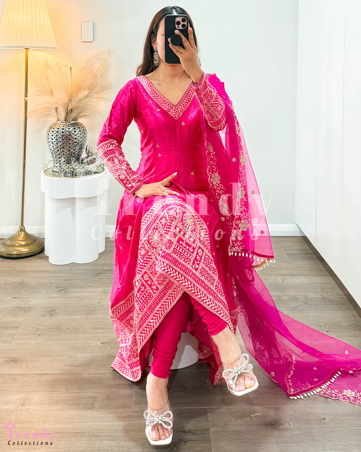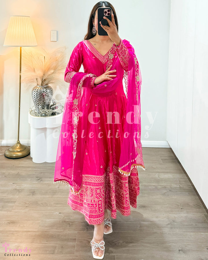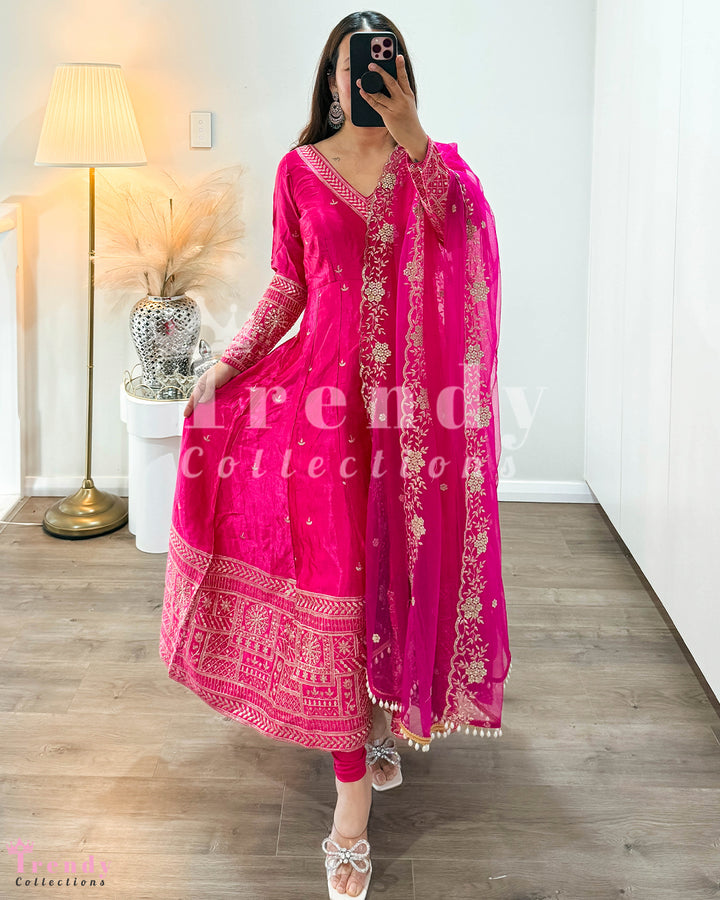 Dola Silk Anarkali Set - Rani Hot Pink (Sizes 34 to 42 available)
