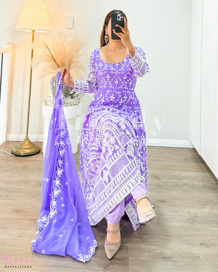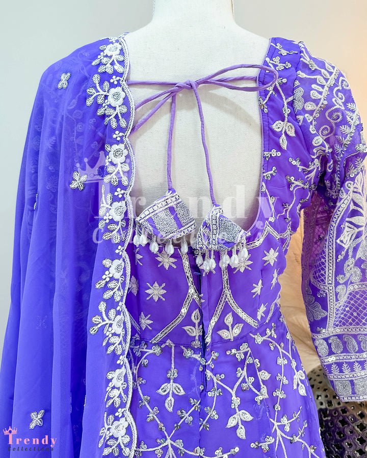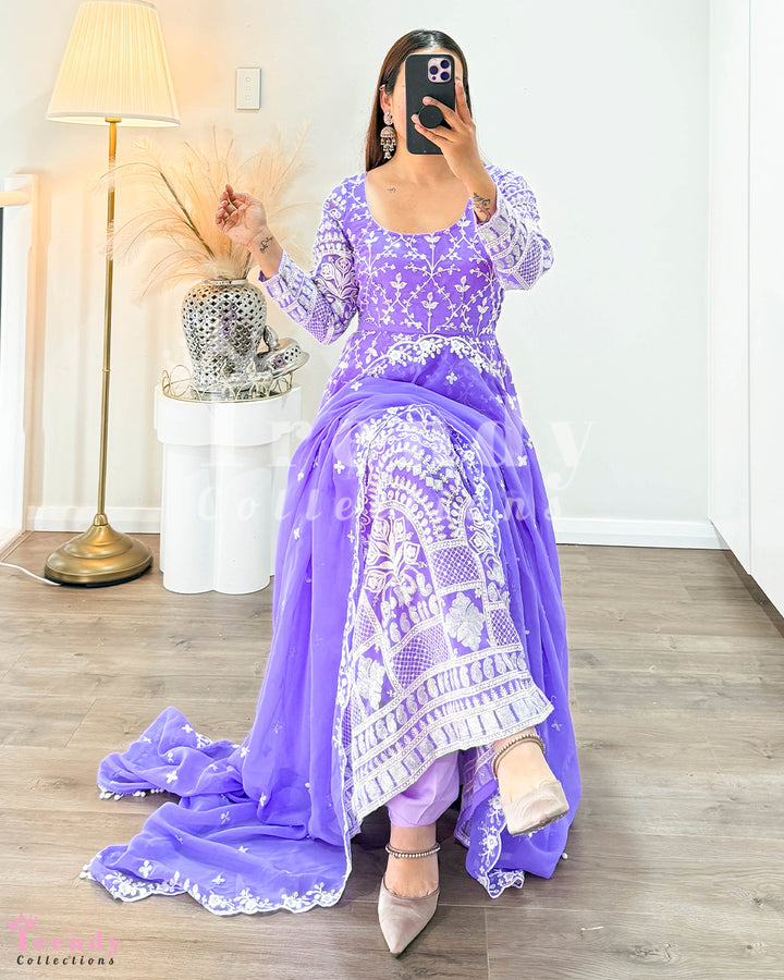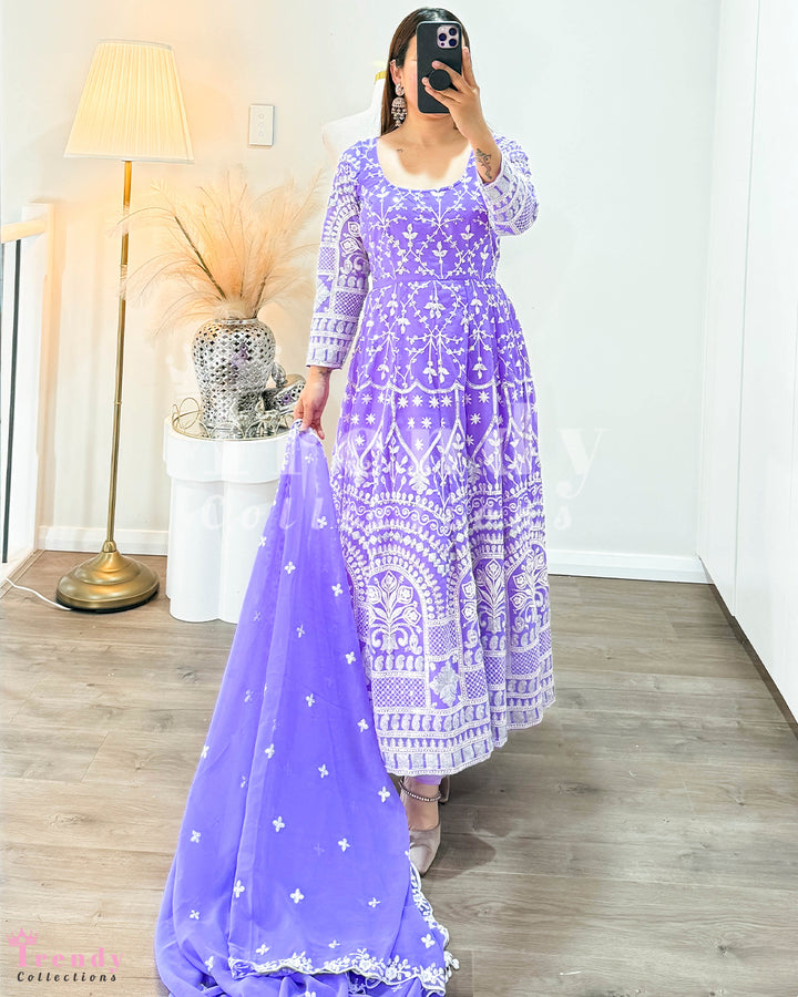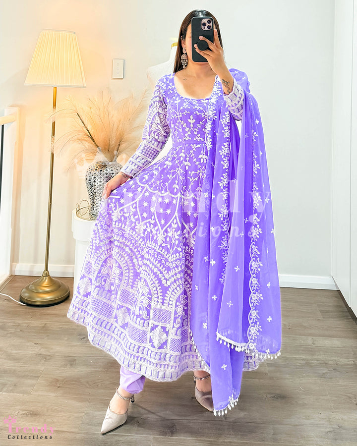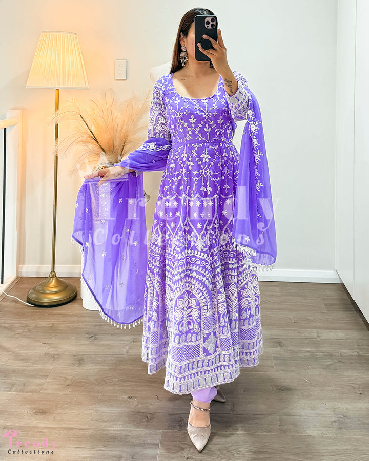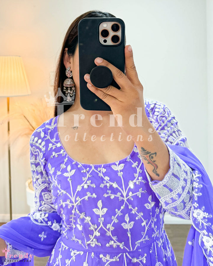 Georgette Anarkali Set with Heavy Thread, Zari & Sequin Work - Lavender Purple (Sizes 34 to 42 available)