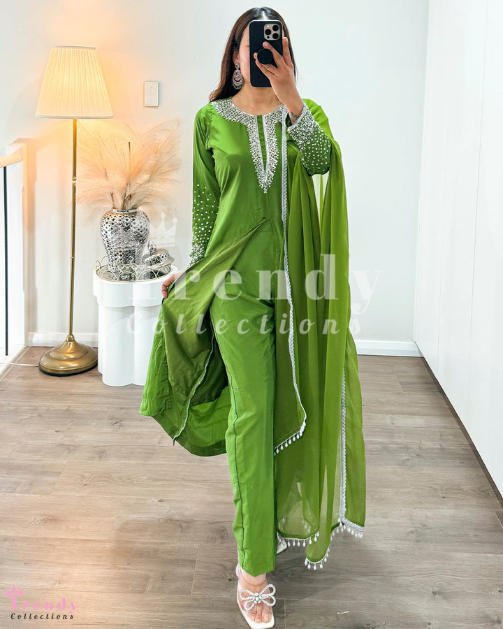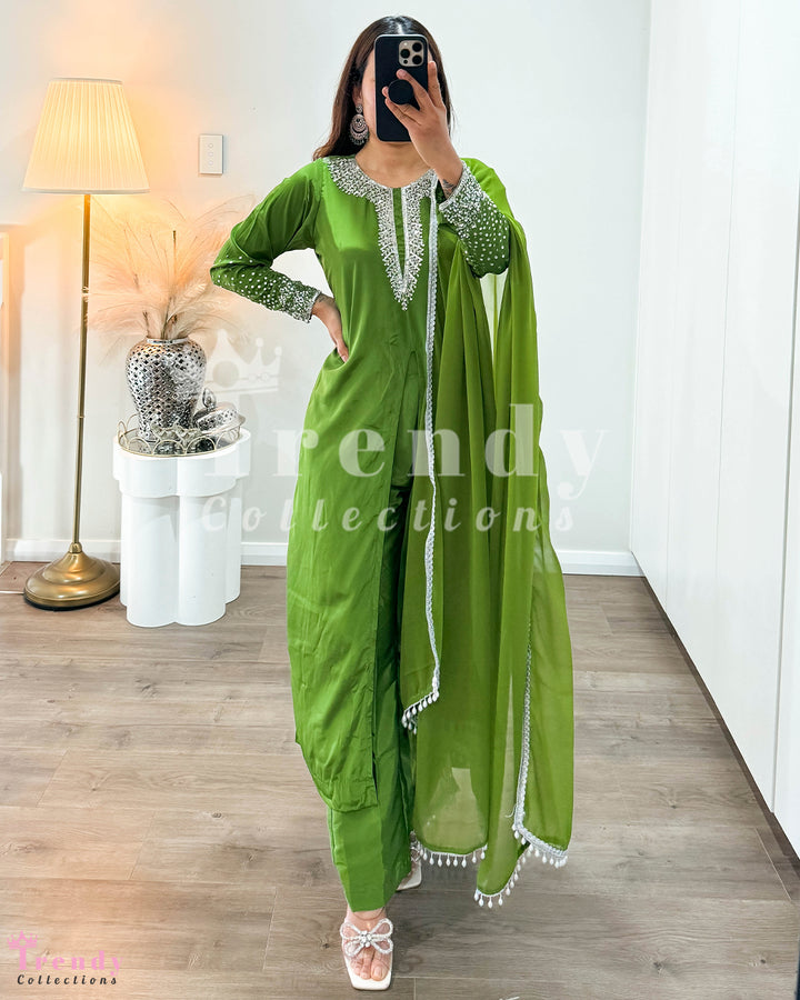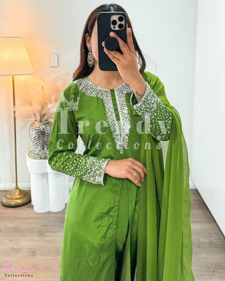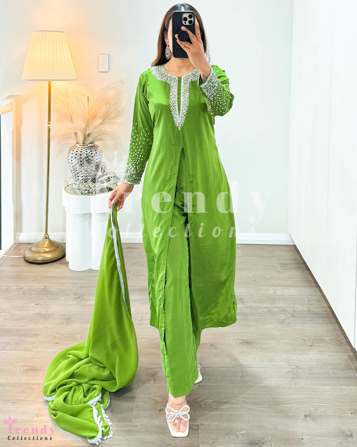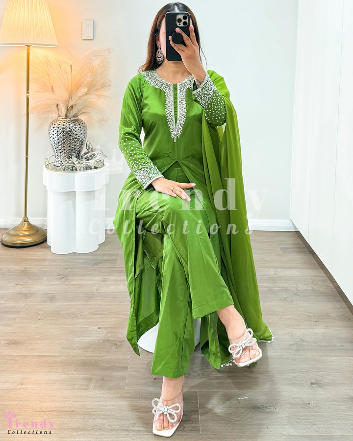 Hand Embroidered Kurtha Plazo Set - Green (Sizes 34 - 40 Available)