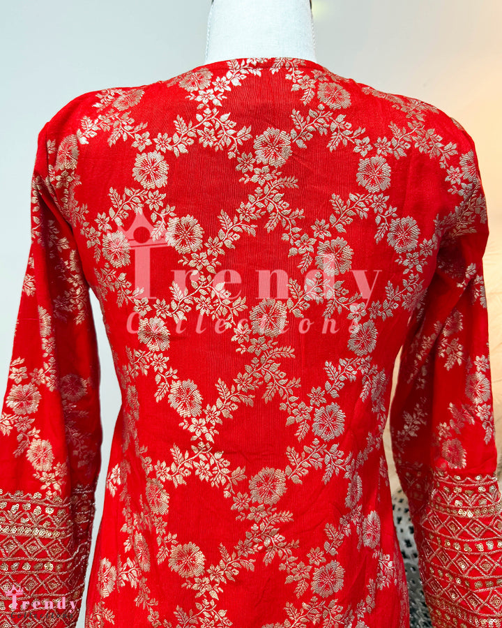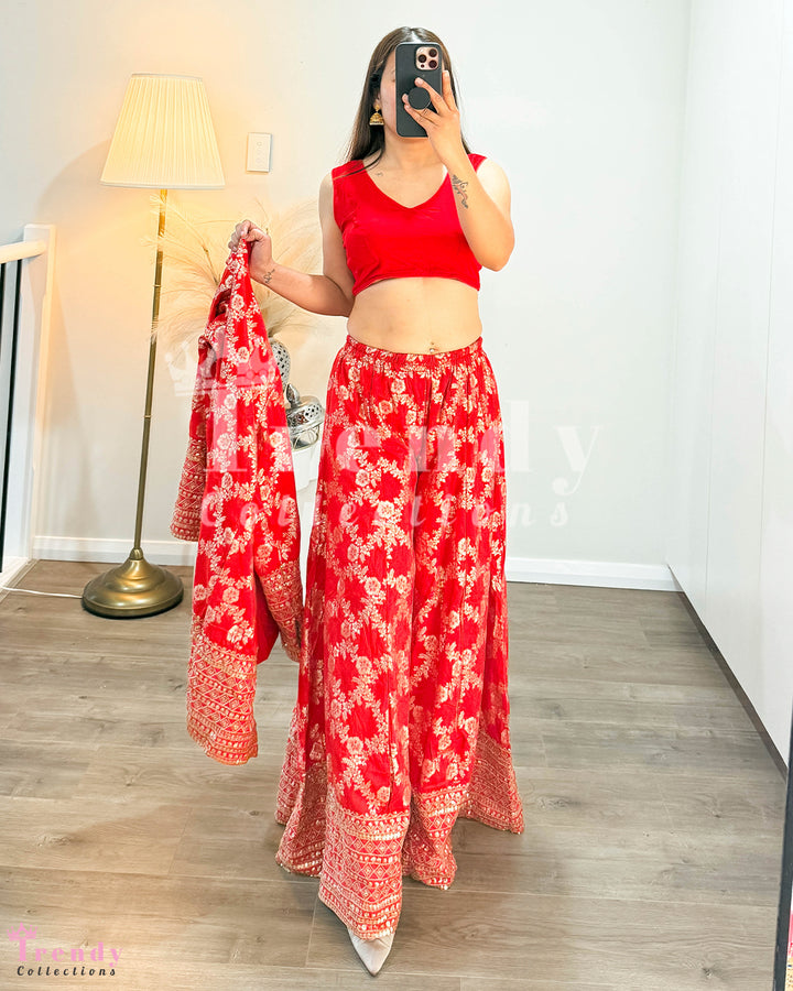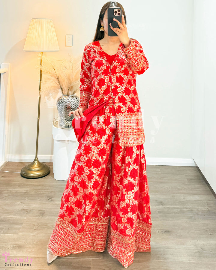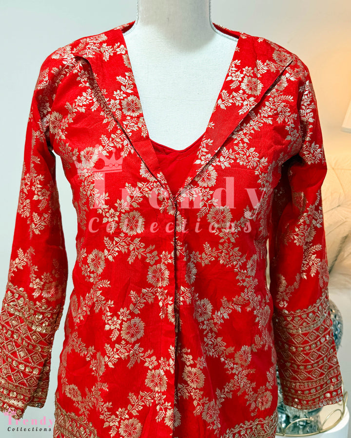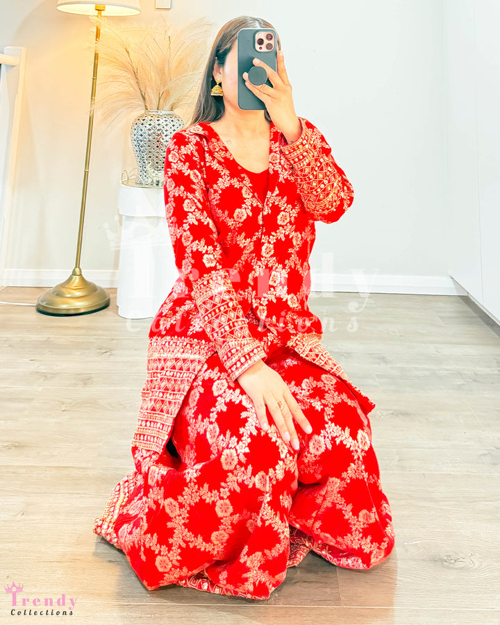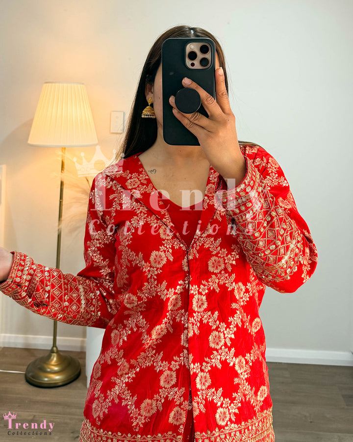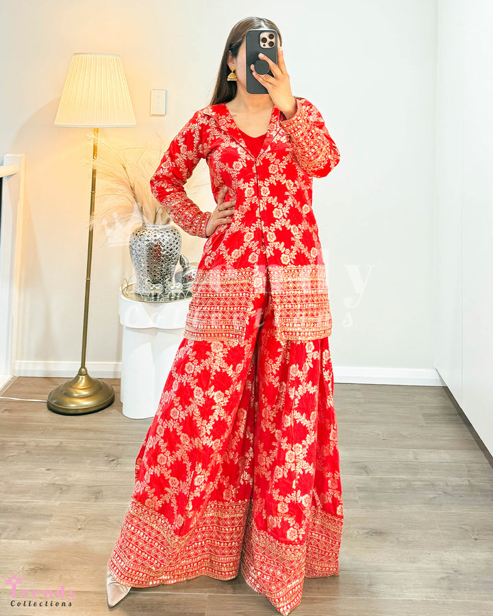 Top Plazo Set with Outer Coat - Red (Sizes 34 - 38 Available)